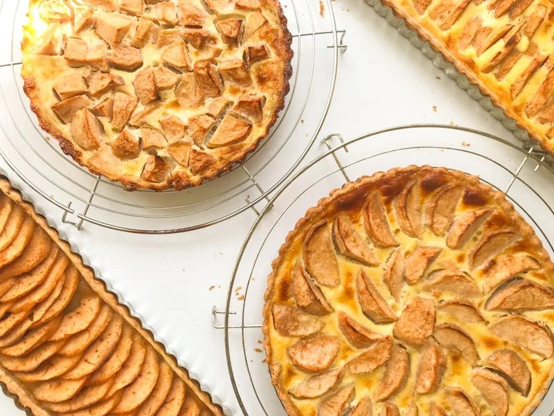 The French apple tart most people have heard of is la tarte Tatin, a caramelized upside-down creation that is the stuff of culinary legend. Less attention is paid to la tarte normande, an apple tart with a creamy custard base. A tarte normande doesn’t have the pretty presentation or the culinary pedigree of a tarte tatin (which has been lauded by gastronomes since the late nineteenth century). It’s more of a homey, comforting dessert (even Alain Ducasse’s version looks a little rustic), lightly sweet, wonderfully satisfying, inexpensive to make and…DEAD EASY.