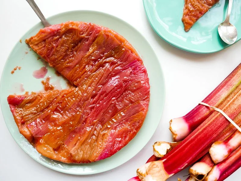 Note: If making the rhubarb tarte tatin ahead, reheat it and unmold it just before serving so that the crust doesn’t get soggy.