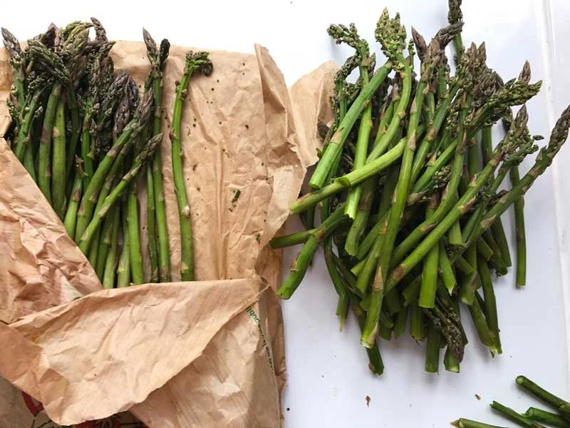 1 lb. pencil-thin asparagus or small asparagus halved lengthwise
